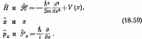 (Члены в алгебраическом операторе, над которыми нет символа оператора ^, означают простое умножение.) Это уравнение очень приятно, потому что его легко запомнить, если вы еще не забыли курса классической физики. Хорошо известно, что энергия (нерелятивистская) состоит из кинетической энергии р2/2m плюс потенциальная, а у нас Таблица 18.1 • АЛГЕБРАИЧЕСКИЕ ОПЕРАТОРЫ В КООРДИНАТНОМ ПРЕДСТАВЛЕНИИ