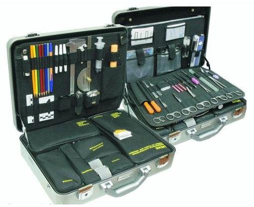 Современная криминалистическая техника используется на всех стадиях исследования доказательств. Выделяется три основных стадии: обнаружение и фиксация доказательств, предварительное исследование и экспертное исследование криминалистических объектов. Далее мы считаем необходимым рассмотреть, как используется криминалистическая техника на каждой из этих стадий. Сбор доказательств как процесс можно разделить на следующие этапы: обнаружение, фиксация, изъятие. Подробнее способы обнаружения объектов будут рассмотрены в соответствующих темах. Технико- криминалистические средства комплектуются в виде специальных наборов, например, в виде следственных чемоданчиков