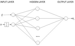 Рисунок 5. Фрагмент схемы идентификации и подавления возмущения на основе нейронных сетей. На данной схеме присутствуют блоки – прямой и инверсный нейроэмулятор. Прямой нейроэмулятор обучен имитировать прямую динамику вертолета, при отсутствии возмущения выход канала вертикальной скорости вертолета и прямого нейроэмулятора будут совпадать, иначе образуется оценка возмущения, которая подается на инверсный нейроэмулятор. Инверсный нейроэмулятор обучен обратной динамике вертолета, зная возмущение, он выдает корректирующее управление. Рассмотрим их подробнее. А. Прямой нейроэмулятор Задача прямого нейро-эмулятора состоит в том, чтобы на основе подаваемого управления и знания предыдущего состояния вертолета спрогнозировать следующее состояние вертолета. Структура этой нейронной сети представлена на рисунке 6.