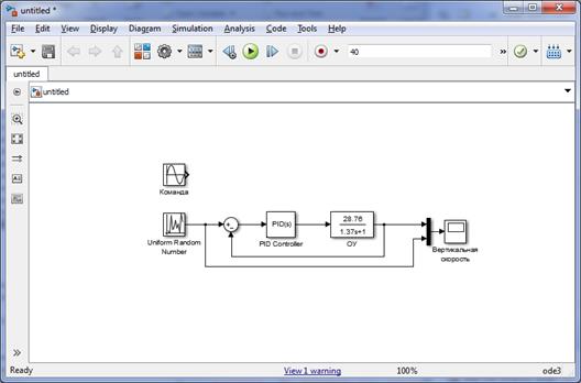 2.1 Реализация в Matlab/Simulink Промоделируем выше описанную систему для передаточной функции канала вертикальной скорости