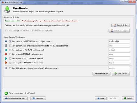 Рисунок 13. Завершение обучения нейронной сети В последнем диалоговом окне сохраняем обученную нейронную сеть под именем VzModelNN.