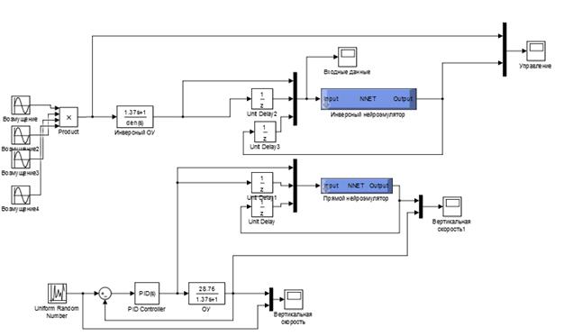 Рисунок 18. Схема проверки работы инверсного нейроэмулятора Реакция инверсного нейроэмулятора на обучающий сигнал показана на рисунке 19.