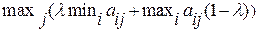 В нашем случае, Критерий: Критерий Вальда называют также максимином, или принципом максимального гарантированного результата. В нашем случае, 3. Критерий Гурвица Критерий: При λ = 1 критерий Гурвица переходит в критерий Вальда, при λ = 0 - в критерий крайнего оптимизма. Т.о. λ - коэффициент пессимизма. Пусть, в нашем случае, λ = 0,7, тогда