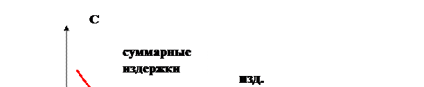 Отметим, что если размер запаса Q не велик, то превалируют накладные издержки (чаще приходится оформлять заказ). С другой стороны, если размер запаса Q велик, то превалируют издержки хранения. В эти издержки включаются оплата труда менеджеров ведущих заказ, офисные расходы и т.п. S- накладные (административные) расходы, связанные с оформлением заказа на партию запасов (set up cost). Пусть Т- время, в течение которого запасы полностью опустошаются, тогда накладные расходы в ед. времени S/T, при этом Т = Q/v. Итак, (Sv)/Q. Суммарные издержки имеют вид: С = Итак, требуется найти такой запас Q, при котором суммарные издержки будут минимальными. Сказанное иллюстрирует график:
