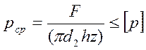 Расчет сводится к определению фактического среднего давления рср между витками резьбы винта и гайки и сравнению его с допускаемым [р]. Условие износостойкости в предположении равномерного распределения нагрузки по виткам резьбы: