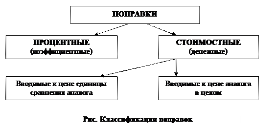 Классификация и суть поправок Классификация вводимых поправок основана на учете разных способов расчета и внесения корректировок на различия, имеющиеся между оцениваемым объектом и сопоставимым аналогом, что отражено на рис.