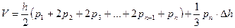 где pn и pn+1 — площади верхней и нижней плоскостей, ограничивающих слой; hn — высота слоя; рnΔh/3 — объем вершины объекта, имеющей превышение Δ h над самой верхней плоскостью сечения. В тех случаях, когда сечение изолиний на карте постоянно, формула для вычисления объемов принимает вид