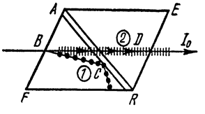 Рис. 1. Прохождение света через кристалл исландского шпата
