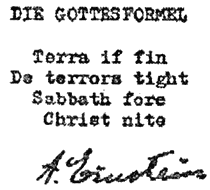 – «Tariff rien». Но что это значит? Томаш пожал плечами. – Ничего. Попытка не удалась. Покрутим как‑нибудь иначе. В течение всего следующего часа они перебирали разные варианты. Из букв первой строки удалось составить еще комбинации «finer rift», «retrain fit» и «faint frier», но ни одна не имела какого‑то внятного смысла. Из второй строки – «De terrors tight» – складывалась только одна анаграмма: «retorted rights», но и она была лишена разумного содержания. – С английским мы тоже далеко не уехали, – подвел итог Томаш. – А могло ли сообщение Эйнштейна быть на немецком? Если весь текст на немецком, ничто не мешало ему и это сообщение написать по‑немецки. – Он пробежал глазами по бумаге. – «Месседж» на немецком, скрытый в строках стиха на английском. Блестящий ход, как по‑вашему? Что ж, игра стоит свеч, попробуем! – Он озабоченно потер лицо. – Постойте‑ка… а что если в зашифрованном сообщении фигурирует название рукописи? – Какое название? «Формула Бога»? – Да, но по‑немецки – «Die Gottesformel». Нет ли в какой‑нибудь из строчек букв «g», «о» и двух «t»? – «Gott»? – Да, слова «Бог» по‑немецки. Ариана быстро проанализировала строки. – Во второй! – воскликнула она. – Сейчас подчеркну.