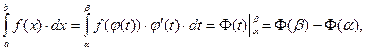 Поскольку формула Ньютона-Лейбница позволяет легко выразить определенный интеграл через значения первообразной для подынтегральной функции, то, очевидно, что при вычислении определенных интегралов могут быть использованы основные методы вычисления неопределенных интегралов: метод подстановки и метод интегрирования по частям. В случае определенного интеграла формула (13) замены переменной переходит в