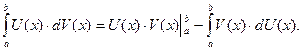 Формула интегрирования по частям применительно к вычислению определенного интеграла записывается как: