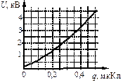 В лаборатории исследовалась зависимость напряжения на обкладках конденсатора от заряда этого конденсатора. Результаты измерений представлены в таблице.