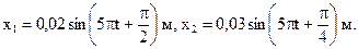 Задача № 77. Найти амплитуду и начальную фазу гармонического колебания, полученного от сложения одинаково направленных колебаний, данных уравнениями: