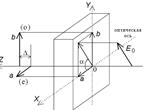3) Дихроичные пластинки. Поглощение проходящих через них электромагнитных волн зависит от направления колебаний вектора напряжённости электрического поля. (пример вещ-ва турмалин) 4) Анизотропные кристаллические пластинки (получение из лин. эллиптич поляр.) Волны с ортогональными направлениями поляризации распространяются с различными скоростями. Если на кристалл из исландского шпата, нормально к поверхности направить луч света, то на выходе наблюдаются два луча.Один из них проходит через кристалл без отклонения и представляет собой продолжение падающего(обыкновенный луч (о)). Второй, несмотря на нормальное падение, испытывает преломление и выходит параллельно первому, но при этом несколько смещен в сторону (необыкновенный (е)). Анизотропные кристаллы подразделяют на одноосные и двуосные. Если толщина пластины равна d, разность фаз δ=2π/λ*(ne – no)d.