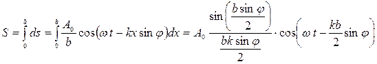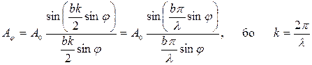 де Результуюче збурення в точці Вj визначиться як сума цих виразів, тобто виразиться інтегралом по всій ширині щілини (по всіх значеннях від 0 до b). Отже: