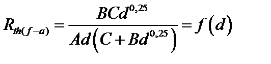 где Тс – температура поверхности охладителя, К; Тa – температура окружающего воздуха, К; Δ T = Тс – Та; Е – коэффициент излучения поверхности (Е = 0,8 – для алюминия). Переходное температурное сопротивление теплопередачи конвекцией (при d< 1 м)