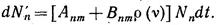 Полная вероятность того, что возбужденный атомза единицу времени перейдет спонтанно или вынужденно с уровня п на низший уровень т с испусканием фотона hv, выразится суммой