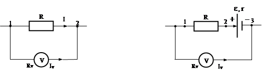 Для измерения напряжения на каком-либо участке параллельно ему включают вольтметр (рис.1). Что показывает вольтметр? Являясь однородным участком цепи, вольтметр показывает напряжение на этом участке, т. е. на себе самом, или разность потенциалов точек, между которыми он включен. Согласно закону Ома (1) напряжение на любом участке равно
