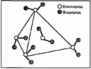 Так происходит образование мостика водорода, так как соседний атом водорода связывается с атомом кислорода, вследствие чего образуются кластеры, состоящие из 300-400 атомов. В результате возникают расходящиеся с теорией свойства воды. Память воды.
