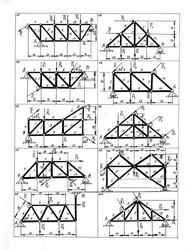 Пример выполнения задания Дано: схема фермы (рис. 16). Р1=10 кН; Р2= 20 кН; Р3=10 кН; а=2 м.
