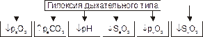 Изменения газового состава и рН крови Изменения газового состава и рН крови при дыхательном типе гипоксии представлены на рис. 15–2. Ы ВЁРСТКА Вставить файл «ПФ Рис 15 02 Типичные изменения газового состава и рН крови при гипоксии дыхательного типа»