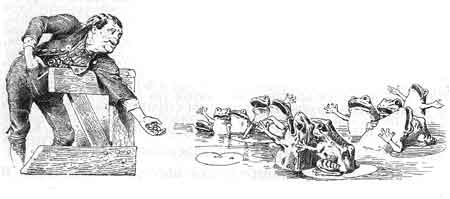 Другие названия: «Выгодный оборот» Однажды мужик стащил свою корову на базар и продал ее там за семь талеров. На обратном пути он должен был проходить мимо одного пруда, из которого далеко кругом разносилось кваканье лягушек: «Ква, ква, ква, ква!» «Ну да, — стал он говорить сам себе, — мелют по-пустому: семь талеров я выручил, а не два!» Подойдя к самой воде, он и лягушкам крикнул: «Глупое вы зверье! Небось лучше меня знаете? Семь талеров, а не два!» А лягушки-то все на своем: «Ква, ква, ква!» «Ну, коли вы не верите, так я вам сочту». Вытащил деньги из карманов и пересчитал все семь талеров, раскладывая по двадцать четыре гроша на каждый. Однако же лягушки не сошлись с ним в счете и опять тянули ту же песню: «Ква, ква, ква!» «Коли так, — крикнул мужик, разгневавшись, — коли вы полагаете, что знаете дело лучше меня, так нате же, считайте сами!» и швырнул им деньги всей кучей в воду. Он постоял на берегу некоторое время и намерен был обождать, пока они справятся со счетом и возвратят ему деньги, но лягушки настаивали на своем, продолжая по-прежнему голосить: «Ква, ква, ква», да и денег тоже ему не возвращали. Подождал он еще немало времени, пока не наступил вечер и не понадобилось ему идти домой; тогда он выругал лягушек и крикнул им: «Ах, вы, водошлепницы! Ах, вы, толстоголовые, пучеглазые! Рыло-то у вас широко и кричать вы горазды, так что от вас в ушах трещит, а семи талеров пересчитать не умеете! Или вы думаете, что так я вот тут буду стоять и дожидаться, пока вы со счетом справитесь?» И пошел прочь от пруда, а лягушки-то ему вслед: «Ква, ква, ква», так что он и домой пришел раздосадованный. Сколько-то времени спустя выторговал он себе корову, заколол ее и стал рассчитывать, что если бы ему удалось выгодно продать ее мясо, он бы столько выручил за него, сколько стоили ему обе коровы, да еще шкура у него в барышах бы осталась. Когда он с мясом подъезжал к городу, то перед самыми городскими воротами наткнулся на целую стаю собак, сбежавшихся сюда. И впереди всех огромная борзая; так и прыгает около мяса, и разнюхивает, и лает: «Дай, дай, дай!» Так как она все прыгала и все лаяла, то мужик и сказал ей: «Ну, да! Вижу я, что ты недаром говоришь: дай, дай, а потому что говядинки хочешь… Ну, хорош же я был бы, кабы точно взял да и отдал бы тебе говядину!» А борзая все то же: «Дай, дай». «Да ты скажи мне: ты ее не сожрешь сама, и за товарищей своих ответишь?» «Дай, дай», — лаяла по-прежнему собака. «Ну, коли ты на этом настаиваешь, так я тебе говядину оставлю; я тебя знаю и знаю, у кого ты служишь; но я тебя предупреждаю: через три дня чтобы мне были готовы деньги, не то тебе плохо придется: ты можешь их мне и сюда вынести». Затем он свалил говядину и повернул домой; собаки тотчас на нее набросились с громким лаем: «Дай, дай!» Мужик, издали прислушиваясь к этому лаю, сказал себе: «Ишь, теперь все от нее своей доли требуют; ну, да мне за всех одна эта большая ответит».
