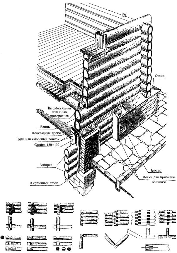 Главы Главы храмов могут быть различного размера и формы в зависимости от размера, типа и конструкции покрытия храма (рис. 55). Каркас глав диаметром до 3 м выполняется, как правило, с деревянными журавцами, вырезанными по шаблону из нескольких спаренных досок толщиной 40 мм и крепящимися к центральному столбу, служащему основанием для Креста. По журавцам выполняется дощатая лекальная обрешетка с шагом около 300 мм или опалубка из перекрестных лент фанеры толщиной 4 - 5 мм в 2 слоя. При чешуйчатом покрытии глав к журавцам крепятся вырезанные по шаблону горизонтальные кружала с шагом, соответствующим размеру чешуи (рис. 56). Конструкция главы выполняется из дерева влажностью не более 12 %. Деревянные элементы крепятся между собой на деревянных нагелях из твердолиственных пород: дуб, бук, ясень. Для глав большего диаметра каркас может быть выполнен из металла (рис. 57). Основу конструкции составляют: опорное кольцо, центральный столб, крепящийся к кольцу подкосами, и гнутые кружала-журавцы. В зависимости от размеров главы журавцы соединяются со столбом в одном или нескольких ярусах металлическими распорками. Между журавцами через 40 - 50 см устраивается разреженная обрешетка из металлических полос. К ней крепится покрытие, выполненное из листов железа, выколоченных по форме главы и соединенных на фальцах. Фартук крепится на стальных кронштейнах с шагом около 150 мм с прикрепленной поверх полосой оцинкованной кровельной стали. Металлические элементы глав свариваются высококачественными электродами типа Э-42А. После монтажа главы все металлические элементы после очистки от ржавчины должны быть обработаны антикоррозийным составом - свинцовым суриком за 2 раза. Конструкция барабана главы может быть кирпичной или с металлокаркасом и деревянными кружальными кольцами, служащими для крепления деревянной обрешетки, которая оштукатуривается по стальной сетке. Для покрытия куполов и глав используется медь, нержавеющая или оцинкованная сталь. Листы толщиной 0,8 - 1 мм выполняются, как правило, в виде чешуи с пропайкой швов. Не допускается непосредственный контакт стальных конструкций глав с медным покрытием. В деревянных храмах для покрытия глав используется лемех - короткие, тонкие, изогнутые по форме главы, фигурные досочки. При этом необходимо учитывать их расположение на кровле и подбирать слои таким образом, чтобы вода с кровли не затекала «навстречу» слою. Для изготовления лемеха используются осина, сосна и дуб. Кресты Кресты, выполненные из дерева (из выдержанного дуба влажностью не более 15 %, без трещин и сколов), обтягиваются медью на медных гвоздях с пропайкой швов. Подкрестное яблоко и конус выколачиваются из меди. Хвостовая вилка Креста выполняется, как правило, из металлической трубы с металлическими полосами, которая вставляется в отверстие центрального столба (рис. 58). Для герметизации стыка между основанием Креста и яблоком используется обвязка полоской стеклоткани с промазкой густотертыми цинковыми белилами. При установке Креста необходимо проследить за правильной ориентацией по сторонам света.