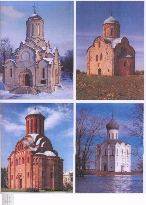 Образцы каноничной храмовойархитектуры 1. Спасский собор Спасо-Андронникова монастыря в Москве, XV в. 2. Церковь Николы на Липне близ Новгорода, XIII в. 3. Церковь Параскевы Пятницы в Чернигове, XIII в. 4. Церковь Покрова на Нерли близ Боголюбова, XII в.