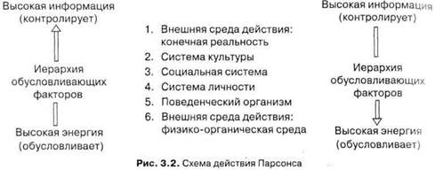 Теперь мы можем рассмотреть парсоновскую систему действия в целом. Основные уровни схемы Парсонса продемонстрированы на рис. 3.2.