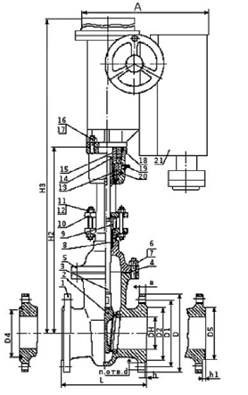 Рис. 26. Общий вид задвижки стальной клиновой с выдвижным шпинделем и ручным управлением