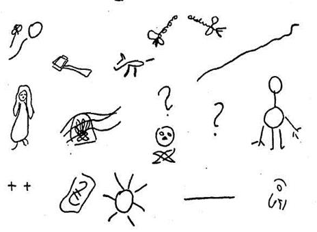Совершенно иначе выглядят пиктограммы, составленные больными шизофренией с выхолощенностью и бессодержательностью ассоциации (рис.2.4).