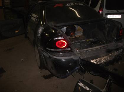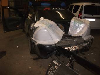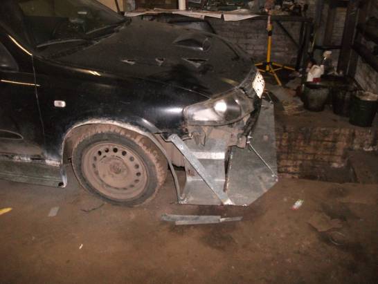 Повреждение стакана правого переднего амортизатора оказалось довольно сильным. Лонжерон оторвало от брызговика и стакан вывернуло вверх, сдержала его распорка, что и помогло сохранить его на месте.