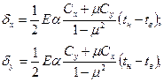 В табл. 14.2 принято: yх = L / l; yу = B / l, где l - характеристика жесткости плиты на упругом основании: или h - толщина плиты; Е 0, m 0 - модуль упругости и коэффициент Пуассона основания; к - коэффициент постели основания. Формула (14.10) или (14.11) используется в зависимости от принятой в расчете модели упругого основания. Для многослойных оснований значения Е 0, m 0, к принимают согласно разд. 14.2, 14.3. Если tв > tн, то наибольшие растягивающие напряжения будут в точках нижней поверхности плиты, а при tв < tн такие же напряжения будут в точках верхней поверхности. В условиях полной невозможности коробления при jх = jу ³ 0,7 будем иметь Сх = Су = 1. Напряжения при изменении температуры по любому закону рассмотрены И.А. Медниковым [5]. Однако исследования показывают, что отклонение температурных изменений от линейного закона обычно не существенно влияет на температурные напряжения.