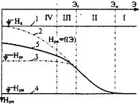 Рис. 16.11. Взаимное положение характерных пределов общего размыва при различной потенциальной размывающей способности расчетного паводка: В зависимости от потенциальной размывающей способности паводка, определяемой соотношением Как показывает анализ графика, изображенного на рис. 16.11, по способу определения расчетного для опор моста общего размыва все мостовые переходы могут быть разделены на четыре группы. Первая группа мостовых переходов характеризуется потенциальной размывающей способностью расчетного паводка большей, чем требуется для достижения нижнего предела. Расчетный для опор моста общий размыв, равный нижнему пределу, определяется по формуле предельного баланса проф. О.В. Андреева (16.6). Вторая группа мостовых переходов характеризуется потенциальной размывающей способностью расчетного паводка большей, чем требуется для реализации гипотетического размыва, но меньшей, чем минимально необходимая для реализации нижнего. Расчетный для опор моста размыв, равный верхнему пределу, определяется по формуле (16.12). Третья группа мостовых переходов характеризуется потенциальной размывающей способностью расчетного паводка, близкой к требуемой для реализации гипотетического предела. Расчетный для опор моста общий размыв, равный гипотетическому пределу, принимается по формуле (16.11). На практике мостовых переходов третьей группы встречается наибольшее количество (порядка 70-75 % от общего их числа). Четвертая группа мостовых переходов характеризуется тем, что потенциальная размывающая способность расчетного паводка слишком мала для реализации гипотетического предела. На мостовых переходах четвертой группы все характерные пределы размыва сильно разнятся между собой, а расчетный для опор общий размыв занимает промежуточное положение между верхним и гипотетическим (см. рис. 16.11). Расчетный общий размыв в этом случае определяется компьютерным расчетом по программе «Рома» по длительной натурной серии паводков с пропуском расчетного в конце одного из многоводных периодов, определившего наиболее опасную направленность русловых деформаций. На ранних стадиях проектирования в качестве расчетного (с некоторым запасом) может быть принят гипотетический размыв, определяемый по формуле (16.11). Признаки, по которым можно сразу же отнести тот или иной мостовой переход к соответствующей группе, представлены в таблице 16.6: Таблица 16.6 Группы мостовых переходов по способу расчета общего размыва