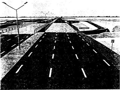 Рис. 27.6. Раздел «3D-вид» системы «IndorCAD/Road» отображение площадных объектов: здания, водоемы, лесные массивы и т.д.; отображение линейно-протяженных объектов: мосты, ограждения, шумозащитные экраны и т.д. отображение в реальном времени всех производимых изменений; интерактивное перемещение по свободной траектории; имитацию «проезда» по автомобильной дороге (вид с точки зрения водителя); запись проезда в AVI-файл любого формата; «врезку» проектной поверхности в существующую, отображение результата врезки; возможность создания сторонними разработчиками модулей расширения возможностей 3D-вида, используя технологию ActiveX; моделирование потока автомобилей в движении с учетом заданной для каждой трассы интенсивности и возможных направлений движения. По завершению работы с моделью проектируемого объекта (дороги) в системе IndorCAD/Road проекции модели на уровне чертежей передаются в специализированный графический редактор IndorDrawing (рис. 27.7).