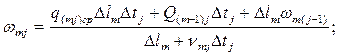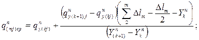 Ip(m) - уклон m- го участка русла, ‰; D lm - m- й расчетный интервал длины русла, м; q(mj)cp - средняя погонная боковая приточность в m- м участке русла при j- м интервале времени, м2/с; q(mj)cp - средняя проекция скорости боковой приточности на направлении скорости потока в m- м участке русла при j- м интервале времени, м/с; D tj - расчетный j- й интервал времени; Нmj, wmj, vmj, Rmj - соответственно глубина (м), площадь живого сечения (м2), средняя скорость (м/с) и гидравлический радиус (м) в m- м створе русла при j- м интервале времени; пт - коэффициент шероховатости m- го участка русла; ут - показатель степени для этого же участка в формуле Н. Н. Павловского. Среднюю боковую приточность для m- го участка русла при j- м интервале времени q(mj)cp определяют по формулам: