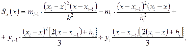 причем на отрезке а = х 0 < х 1,..., хn = b каждому значению абсциссы соответствует значение ординаты y 0, y 1,..., yn. Задача сводится к нахождению аппроксимирующей функции S (x), называемой сплайном сетки А, интерпретирующей значения ординату, в узлах сетки. Основное соотношение для кубических сплайнов: