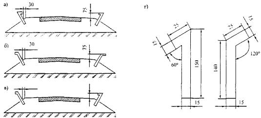 Рис. 12.7. Съёмные направляющие устройства и их элементы: Направляющие (сигнальные) столбики на таких участках устанавливают на откосах насыпи в 30 см от бровки земляного полотна или устраивают их в виде наклонных столбиков сечением 15´10 см с отгибами (рис. 12.8). Такое размещение столбиков позволяет очищать от снега всю поверхность земляного полотна плужными снегоочистителями. Опыт показывает, что при этом количество сбитых или повреждённых столбиков исключается почти полностью.