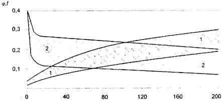 Толщина слоя рыхлого снега, мм Рис. 15.2. Зависимость коэффициента сопротивления качению и коэффициента сцепления от толщины слоя рыхлого снега: Вся система мероприятий по зимнему содержанию дорог должна быть построена таким образом, чтобы с одной стороны обеспечить наилучшие условия для движения автомобилей, с другой - максимально облегчить, ускорить и удешевить зимнее содержание. Чтобы обеспечить выполнение этой задачи, при зимнем содержании проводятся: профилактические меры, цель которых - не допустить или максимально ослабить образование снежных и ледяных отложений на дороге; к числу таких мер относятся уменьшение снегозависимости дорог, профилактическая обработка покрытий химическими противогололедными веществами и др.; защитные меры, с помощью которых преграждают доступ к дороге снега и льда, поступающего с прилегающей местности; к ним относится применение защит от метелевого переноса, от снежных лавин, от наледного льда. Главным критерием качества снегозащиты следует считать полное исключение отложений метелевого снега на дорогах с тем, чтобы для патрульной снегоочистки оставалось только удаление снега, выпадающего во время снегопадов; меры по удалению уже возникших снежных и ледяных отложений (например, очистка дорог от снега и льда), а также по уменьшению их воздействия на автомобильное движение (обработка обледеневшей поверхности дороги материалами, повышающими коэффициент сцепления шин с дорогой). Требования к состоянию дорог в зимний период. Состояние поверхности дорог зимой зависит от климатических характеристик района проложения дороги, её конструктивных особенностей, степени защищённости от снежных заносов, а также от организации работ по очистке дорог от снежных отложений и ликвидации зимней скользкости. Требования к уровню зимнего содержания определяются исходя из оценки влияния состояния дорог в зимний период на различных участках на обеспеченность расчётной скорости, которая зависит как от динамических качеств автомобиля, так и от соотношения сил сцепления и сопротивления качению при различной толщине слоя рыхлого снега на покрытии. Влияние снежных отложений и зимней скользкости на режим движения автомобилей можно установить из анализа основного условия движения, которое в упрощённом виде имеет вид: m × j ³ f ± i, где m - коэффициент сцепного веса, колеблется от 0,5 до 0,65; j - коэффициент сцепления; f - коэффициент сопротивления качению; i - продольный уклон, в промилях. Если принять величину коэффициента сцепного веса равной 0,5, то основное условие движения можно сформулировать в следующем виде: движение автомобиля по дороге будет возможно только тогда, когда величины коэффициента сцепления будет в два раза выше, чем сумма дорожных сопротивлений, состоящая из сопротивления качению и продольного уклона. Следовательно, при определенных соотношениях сцепных качеств и сопротивления качению движение по дороге в тяговом режиме может оказаться невозможным независимо от динамических качеств, а максимальная скорость движения автомобиля (V max) в тяговом режиме не может быть больше величины, определённой по формуле А.П. Васильева: