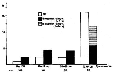 Рис. 11.20. Прогностическая ценность определения поздних потенциалов в группе из 511 больных (проспективное исследование). Обсуждение в тексте.