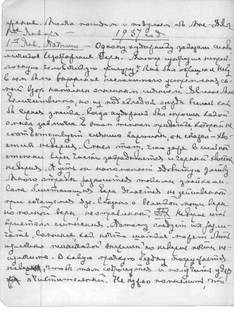 Страница дневника Елены Ивановны Рерих (1 января 1937 г.)