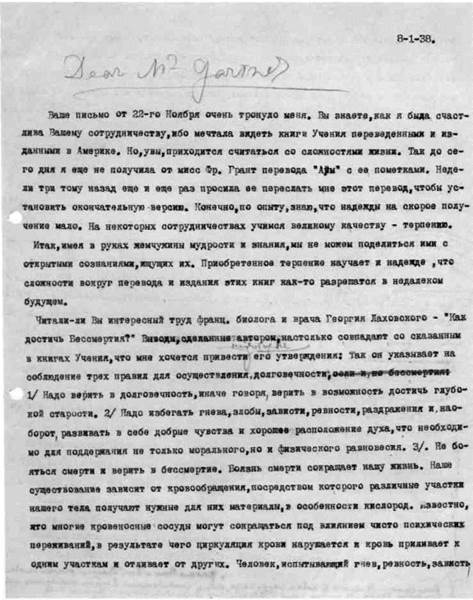 Иллюстрации. Письмо Е. И. Рерих Д. Л. Гартнеру от 8января 1938г