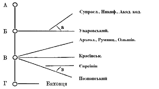 Буквою А означено початкові праґматичні оповідання, чи їх компіляцію, Б — сю компіляцію доповнену лїтописними записками з 1-ої пол. XV в., а — скомбіновану з північною лїтописною компіляцією. В — старша редакція з доданнєм лєґендарної історії в. кн. Литовського; в — додані записки з другої пол. XV і першої пол. XVI. Г — доповнена і перероблена редакція (ширша), від котрої іде кодекс Биховця. 14) Супрасльская рукопись, содержащая въ себЂ новгородскую и кіевскую сокращенныя лЂтописи, Мва, 1836, с. 138: тут ся серія записок зачинаєть ся запискою про царгородське взятє і кінчить ся запискою з 1500 р. на с. 147. Коротка аналїза лїтописи в статї Тиховського: Такъ называемая „Краткая кіевская лЂтопись”, Кіевская Старина 1893, IX; автор дещо аналїзує лише компілятивну (вступну) участь сеї лїтописи й уважає її смоленською, хоч і без особливих підстав; що ж до додаткових записок кінця XV в. і повісти про битву на Орші, то обмежаєть ся загальними висказами, знаходячи тут „литовський характеръ по тону и бЂлорускій по языку”. 15) Я наведу сей уривок як взірець сучасного лїтописного стиля сеї староруської марки: „В лЂто 7004 приходиша в Волыньскую землю сынове перекопскаго царя Мен-Кгиреа со всею ордою Перекопскою и много зла сотвориша Волыньской земли: и церковь и монастырь святого Николы в Жидычыне сожгоша и полону безчислено взяша, а ины посекоша... И почаша Татарове не въ мнозЂ приєзжати къ граду, наши же не видЂвше, яко множество ихъ, и рекоша к собЂ: сотворимъ что мужско! И выЂхаша противу ихъ предъ мЂсто и биша ся крЂпко с ними и убиша от них нЂколико. И выступиша множество Татар, и видЂвъ князь Семень, яко невъзможно стати противу им и възврати ся въ градъ, и Половци же мЂсто съжгоша и мало нЂчто из града окупа вземше и съ всЂм пленомъ възвратиша ся въ своя си” (с. 142). Як бачимо, окрім ортоґрафії, уже значно ослабленої канцелярійною мовою (напр. е зам. n) та деяких технїчних термінів (напр. мЂсто) мало що зраджує тут кінець XV віка. 16) „Прировнани єсте великим храбрым рицерем славнаго града Родоса, которыи иж своимь мужьством многии замки христіаньскии от поганьских рук впокойны чинять, вашего мужьства отпором таковому силному пану тоєж славы и чести сподобили ся єсте”. 17) В самім текстї повісти також звертали на себе деякі фрази з ритмічним складом, як: и тыхъ збитыхъ плоти звЂри ядять по земли кости волочачи, а стопленых водами рыбы клюють. Пор.: Тиховскій Прозою или стихами написано „Слово о полку Игоре—. Кіев. Стар. 1893, IX с. 52. 18) Як я згадував на своїм місцї (III 2 с. 497-8), на XIII або XIV вік гіпотетично кладе др. Франко зложеннє Слова о Лазаревім воскресеннї; проф. Пететц перекладає її, также голословно на XII-XIII в. (Историко-литерат. изслЂдованія III с. 3). З другої половини XIV віка (1386) маємо ритмічний переклад Шестоднева Георгія Пісіда, зроблений Дмитром Зоографом (виданий в Памятниках др. письмен. 1882), але він не має нїяких слїдів не тільки українського або білоруського походження, а й взагалї східно-славянський початок його не певний. Натомість можна звернути увагу на якісь слїди ритмічної чи радше циклїчної будови в смоленській записцї з 1428 року, що послужила джерелом для похвали в. кн. Витовтови включеної в русько-литовську лїтопись коротшої редакції: Тогда бяху крЂпко служаще єму велиціи князи... честь и дары подаваху єму и також служаху єму и въсточныє великии цари татарьскии та