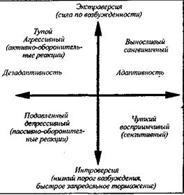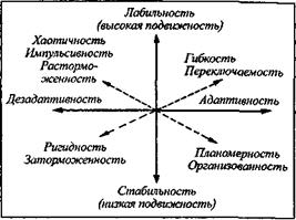 Рис. 23. «Четырехполюсное» описание черт «лабильность-стабильность» при ртогональных параметрах «адаптивность- дезадаптивность»