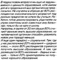 Смена модели социализации в 90-е гг. XX в. В 90-е гг. социализация российской молодежи проходит совсем в иных условиях, нежели в 60—80-е гг. Физическую акселерацию (ускоренное развитие) подростков дополняет сегодня акселерация социальная, юридическая и экономическая. Однако никакой политической и нравственной акселерации у них не происходит. Возникает противоречие вначале в общественной позиции подростка, а затем в формах поведения. Он тянется к предпринимательству и бизнесу, но как разумно распорядиться деньгами не знает. Он старается казаться взрослее, но психологически не способен это сделать. Многие подростки стремятся заработать быстрые деньги, не брезгуя незаконными путями. Они стремятся к полнокровным проявлениям жизни и разнообразному досугу, единственным способом достичь которых нередко становится наркотик. 17 Новый курс России: предпосылки и ориентиры. М., 1996. С. 90; Ковалева Т.В., Степанова O.K. «Подростки смутного времени» (К проблеме социализации старшеклассников) // Социс. 1998. № 8. С. 57-58; Иванов В.Н. Россия: обретение будущего. М., 1997. С. 103. Социологические исследования подтверждают вывод о качественном скачке материальных притязаний молодежи. С одной стороны, выросли стандарты потребления по образцу западных стран, с другой — материальное положение многих семей значительно ухудшилось по сравнению с предшествующим, советским, периодом. Заботы по содержанию школьника государство переложило со своих плеч на родителей. Сегодня даже скромное, на уровне прожиточного минимума (весной 1997 г. он составлял примерно 0,8 млн руб.) содержание подростка старшего возраста обходится в месяц около 1 млн руб. Подростки из малообеспеченных семей зачастую вынуждены оставлять учебу после 9 классов. Они идут работать, а учебу продолжают те, кому позволяют материальные условия. Оплата репетиторов и занятий на подготовительных курсах далеко не всем по карману. С одной стороны, молодежь приучается к инициативности, изживает иждивенчество, обретает жизненный опыт, с другой — нельзя закрывать глаза на слабую совместимость регулярных приработок с интенсивной учебой в выпускных классах. Очень немногие родители и родственники, тем более сами подростки, в состоянии накопить деньги для улучшения жизненных шансов и обеспечения карьеры Переход на индивидуалистическую модель социализации грозит обернуться десоциализацией. Молодежи приходится вырабатывать взгляды на жизнь в обстановке моральной вседозволенности так называемого «периода первоначального накопления капитала». Хотя всем понятно, что приобщение к высоким нравственным ценностям — один из показателей успешной социализации.