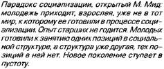 ЮНОСТЬ Как мы уже говорили, процесс социализации проходит фазы, которые называют еще стадиями жизненного цикла человека. Это детство, юность, зрелость и старость. Юность завершает активный период социализации. К юношам обычно относят подростков и молодых людей в возрасте от 13 до 19 лет. Их еще называют тинейджерами. В этом возрасте происходят важные физиологические изменения (одно из них — наступление половой зрелости), которые влекут за собой определенные психологические сдвиги: появляются влечение к противоположному полу, агрессивность, зачастую немотивированная, проявляются склонность к необдуманному риску и неумение оценить степень его опасности, подчеркнутое стремление к независимости и са-мостоятел ьности. Психофизиологические изменения не могут не повлиять на ход и содержание социализации. Склонность к инноватике и творчеству, непризнание всех и всяких авторитетов, с одной стороны, подчеркнутая автономия и независимость — с другой, порождают особое явление, которое называют молодежной субкультурой. Она ассоциируется с тремя главными негативными чертами, явлениями-символами: наркотиками, сексом и насилием. Подростковый период называют «трудным возрастом», «переломным периодом». Его содержание заключается в изменении поведенческих характеристик: от почти полного послушания, свойственного малым детям, юноши переходят к сдержанному непослушанию — скрытому неповиновению родителям. Если раньше, будучи детьми, они смотрели на мир глазами своих родителей, то теперь они ведут как бы двойной счет: у подростков и юношей выстраивается параллельная система ценностей и взглядов на мир, которая частично пересекается с позицией родителей, а частично — со взглядами сверстников. ' В этот период заканчивается формирование фундамента личности, достраиваются ее верхние — мировоззренческие — этажи. Осознание своего «Я» происходит как осмысление своего места в жизни родителей, друзей, окружающего социума. Одновременно наблюдается постоянный поиск нравственных ориентиров, связанных с переоценкой смысла жизни. Подростки и юноши более восприимчивы к негативным оценкам окружающих, особенно если они касаются одежды, внешнего вида, манер поведения, круга знакомств, т.е. всего того, что составляет социальную среду и социальную символику «Я». Гипертрофированная самостоятельность находит выражение в подчеркнутой резкости собственных оценок: для многих тинейджеров «хорошо» и «правильно» только то, что им нравится. Трудности социализации в этот период связаны с тремя главными обстоятельствами: • несовпадением между высоким уровнем притязаний (стремление стать героем, прославиться) и низким социальным статусом, который задан их возрастом; • несовпадением старого стиля родительства, ориентированного на то, что для матери сын или дочь всегда остается ребенком, и новых потенциальных возможностей тинейджеров, заданных их психофизиологическим повзрослейием; • противоречием между усилившейся ориентацией на самостоятельность и усилившейся зависимостью от мнения и поведения сверстников. Психофизиологическое повзросление практически ничего не меняет в социально-экономическом положении тинейджеров. Социальные статусы родителей и юношей по-прежнему несовместимы: родители зарабатывают на жизнь, несут моральную и право