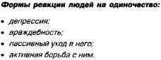 Одиночество — это еще и страх перед жизнью, непонятными или непонятыми законами, которые управляют обществом и поведением людей. Боясь взять на себя ответственность за слишком рискованное существование в непостоянном мире, человек прячется за стены больших организаций (бюрократий), сильных централизованных государств, законы о гарантии занятости и коллективной безопасности и т.д. Коллектив готов обеспечить тотальную безопасность, но в ответ он предлагает человеку отказаться от своей личности, стать как все. Свобода, понятая как свободный выбор, превращается в свободу, трактуемую как познанная необходимость. Стать винтиком в хорошо отлаженном механизме общества или коллектива безопасно, но это не решает главной задачи — проблемы смысла жизни и предназначения человека. Выход из ситуации одиночества оказывается на поверку иллюзорным. «Существование человека в коллективе не равнозначно существованию человека в общении с другим человеком. В коллективе личность не освобождается от своего одиночества, между тем как одиночество связывает живущих, "живет" с ними... Человеческое одиночество здесь не преодолевается, а только лишь заглушается. Вытесняется знание об одиночестве, однако в действительности, в своей глубине, состояние одиночества остается непреодоленным, и втайне зреет жестокость. которая проявляется с крушением иллюзии. Современный коллективизм — это последний барьер, который возводится человеком на пути встречи с самим собой»20. За долгую историю человечество испробовало множество лекарств от одиночества. Можно предаваться безудержному веселью или постоянно находиться среди людей, можно завести себе кошечку или собачку и таким способом восполнить дефицит общения и соучастия. Можно, наоборот, воспитать в себе сильный характер, который позволит вовсе не бояться или не замечать одиночества либо переживать его, чаще всего на краткое время, как естественную потребность души. Если природа наделила вас оптимизмом и характером сангвиника, то большую часть времени вы будете радоваться жизни и редко предаваться унынию. Можно с головой уйти в бизнес или любимую профессию, можно найти верных друзей или любимого человека, с которым можно всегда поделиться душевными переживаниями. Можно обратиться в церковь, где человек находит не только исцеление души, отпущение грехов, но через которую он обретает новый смысл жизни. Одиночество часто возникает тогда, когда человек понимает, что никому не нужен или что ему не о ком заботиться. Стать нужным другим, о ком-то заботиться, проявлять участие и сострадание — эффективный выход из одиночества. Можно создать клиники для лиц, испытывающих затруднения при общении, сформировать группы по интересам для холостяков и незамужних, организовать службы знакомств. Одиноким людям при помощи лекций, публикаций или телевидения дать теоретические представления об одиночестве с тем, чтобы их не пугали так сильно собственные пережива-