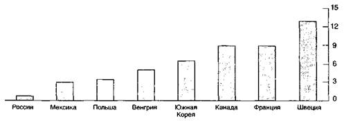 Врезка Расходы на одного студента учреждений профессионального образования в различных странах в 1998 г. (в тыс. долл. по паритету покупательной способности) по материалам к заседанию (оссо-вета 29 августа 2001 г.: дицинские — 30,7 тыс. человек. (Для сравнения: в 1995 г. список специальностей по убыванию популярности среди абитуриентов выглядел так: инженерные, гуманитарные дисциплины и просвещение, экономические, сельскохозяйственные, естественные и медицинские.) Сегодня подготовка специалистов с высшим профессиональ-