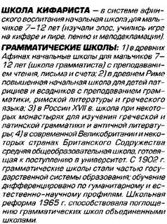 частных зданиях. Ученики писали на вощеных табличках, позднее на папирусе. Чтение (после усвоения грамматики) сводилось преимущественно к ознакомлению с классическими произведениями. Обучение арифметике, чтению и письму происходило одновременно (так как цифры изображались буквами). В восточной Греции, особенно в Ионии, обучение в школах, доступное для всех свободнорожденных, велось педагогами (оплачивались за счет общества) и было рассчитано на 2 года. В некоторых местах (например, в Пергаме и Теосе) существовали подобные школы для девочек, в которых их обучали преимущественно музыке и литературе.