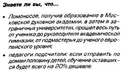 Врезка СССР И США: СОРЕВНОВАНИЕ ИНТЕЛЛЕКТОВ? Когда в 1957 г. Советский Союз запустил первый искусственный спутник Земли, Соединенные Штаты пережили шок. Общество стало буквально одержимо мыслью, что американская система образования не в Шереги Ф.Э., Харчева В.Г., Сериков В.В. Социология образования: прикладной аспект. М., 1997. 7 Там же. С. 45. 8 Там же. С. 60. состоянии обеспечить продвижение технического прогресса на одном уровне с Советским Союзом. Школы подвергались осуждению за «разбавленные» учебные программы, из-за которых молодое поколение американцев оказалось неспособным ответить на вызов, брошенный коммунизмом. В результате Конгресс издал Акт об образовании как элементе национальной безопасности. На нужды образования из федерального бюджета выделили около 1 млрд долл. Эти деньги были направлены на повышение уровня преподавания математики, естественных наук и иностранных языков. Школы модернизировали свои лаборатории. Новые учебные программы по математике и естественным наукам разрабатывали ведущие ученые, чтобы в них должным образом отразились последние научные достижения9. Добилась ли средняя школа Америки желаемых результатов? В середине 70-х гг. общественность начала выражать тревогу в связи с неуклонным снижением академических показателей учеников. С 1963 по 1980 г. регулярно проводимое тестирование академических способностей (SAT) фиксировало постоянное ухудшение результатов. Вербальные показатели снизились на 50 пунктов, а средние математические — на 40. Приемные комиссии вузов, а именно они проводили тесты в школах, забили тревогу — кто идет учиться в университеты? Мне удалось опросить выпускников школы через год, 10 лет и больше (теперь они уже сами родители). Родители считают, что им школа дала много полезного. Образование было на достаточно высоком уровне, да и для дальнейшей жизни многие дисциплины пригодились (домоводство — для девушек; для ребят — обучение вождению, столярное дело и др.). Я считаю, и многие сверстники со мной согласны, что школа развила в нас многие хорошие качества: научила общению, выработала чувство долга, развила чувство коллективизма (в хорошем смысле слова), но также учила быть индивидуальностью, самостоятельно принимать решения и самому отвечать за себя. Единственный недостаток моей школы (да я думаю, что не только моей) — тот, что знания давались не на том уровне, на котором хотелось бы. Их было недостаточно для поступления в вуз, поэтому приходилось нанимать репетиторов. Ностальгию по школьным годам, я думаю, испытывают все. Особенно через год после ее окончания, когда человек поступает в вуз, где требования гораздо выше, где жалеть уже никто не будет, где, наконец, нужно надеяться только на самого себя. Человек вспоминает о школьных годах как о беззаботном времени (все-таки контрольные и сочинения не сравнить со студенческими сессиями). Может, я ошибаюсь, но мне кажется, что через много лет ностальгию по школе больше испытывают служащие и работники интеллектуального труда, чем рабочие (у них немного грубее восприятие и подобная сентиментальность им вряд ли присуща). И все же, то, испытывает ли выпускник теплые чувства к школе или нет, во многом зависит от классного коллектива, от отношений с учителями и т.д. Простой школе, как я писала выше, люди обычно преданны. Это место, где проведено стольк